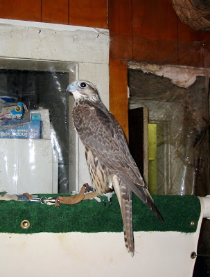 Another male Gyr X Saker, but this one rather than a stout Gyr resembles a long, lean, long- tailed Saker. He weighs virtually the same.