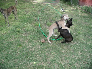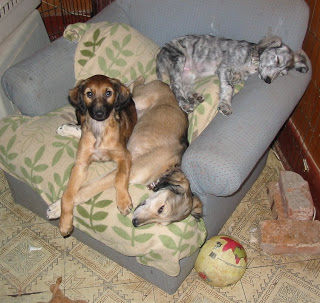 Irbis (brindle), Kira (red) and Jengiz (grizzle), last day together.