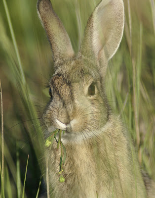That same morning, I saw this cottontail at a gravel pit – I hate being caught with food in my mouth, but this one is cute while it eats.