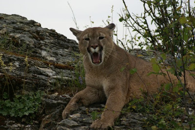 Flipping through photos of this captive mountain lion, I laughed when I realized he really looked like a dangerous beast in this photo. I could use this as a stand-alone photo for dramatic effect, right? But the truth is this shot was taken at the peak of this tom’s yawn, as you can see from the photos below, which show the action just before the dramatic photo.