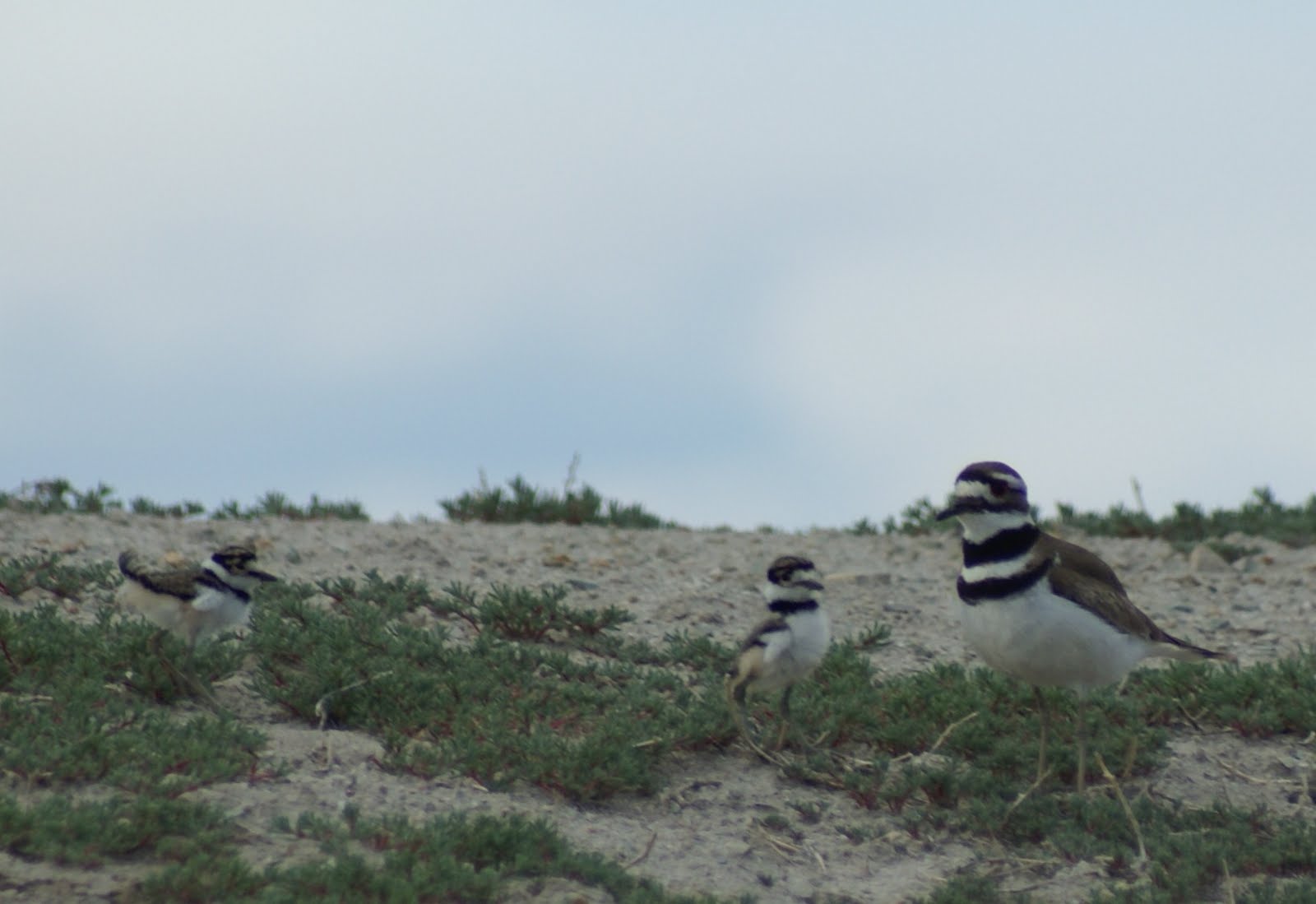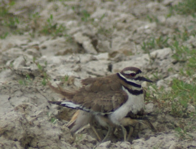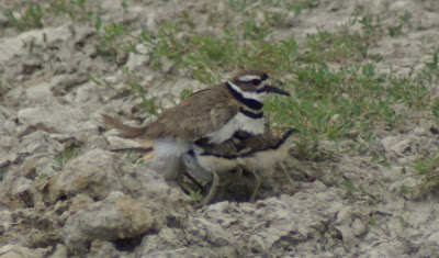 Late yesterday afternoon the wind picked up and the skies threatened a storm, and I arrived at the spring to find one of the killdeer hens hunched down, with six extra legs sticking out from her wing feathers. Three of her babes were huddled underneath the hen, seeking shelter from the weather. Although I’d seen domestic chickens do something similar during a rainstorm, I was pleasantly surprised at the eight-legged hen I met at the spring.
