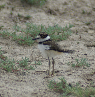 Birds that nested earlier in the spring are now tending to their broods, as my recent trip to a nearby spring revealed. The spring is surrounded by a high-walled earthen reservoir, so I never know what animals I’m going to meet up with until I come over the top of the reservoir and the meeting occurs. Earlier this week, I came over the top to find a half-dozen killdeer chicks scurrying around on the ground, wading through water on their long legs, and generally making the two mothers that accompanied them very nervous. One of the females took to the air, flying close to my head as she let out a shrill call, while the other dropped into the broken-wing ploy. I apologized to the harried mothers and backed out of the situation, laughing at the trouble I can get myself into without even trying.