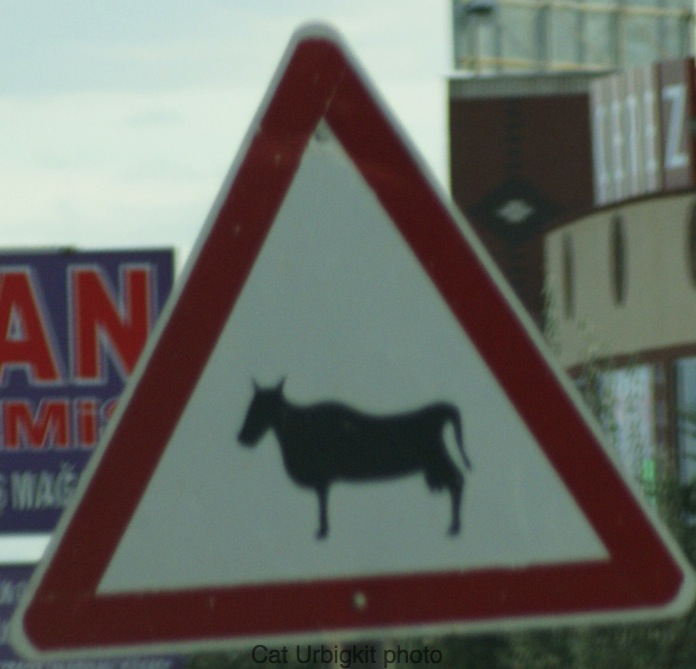The Portugese cattle signs were very different, as the photo above indicates. But where it got really funny was throughout Turkey. Various areas of Turkey had cattle signs demonstrating entirely different cattle physiques, some emphasizing milk production, while others were more beefy. Sorry the photos aren’t clear, but they were snapped through a windshield at a high rate of speed (Turkish drivers are another story).