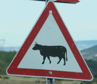 I promise I’ll soon be posting about our livestock protection dog research and travels, but in the meantime I’ve got a few other rather entertaining side notes to share. As we traveled in Spain, I noticed there were cautionary signs indicating that cattle were grazing in the area, and those signs included the shape of a rather attractive Spain bull-fighting type of cattle. Should of snapped a photo, but didn’t.
