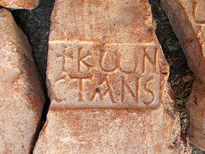 A recent drought has exposed the remains of a Byzantine port city located just west of Istanbul. Turkish archaeologists report artifacts dating most commonly from the Fourth to the Sixth Centuries, including these bricks stamped with the name “CONSTANS” (see picture) that resemble some used in the construction of the Hagia Sophia. The archaeologists are calling the site Bathonea, but admit they don’t know if that is its real name. I must confess I am somewhat surprised that there isn’t documentary evidence of a city of this size only 13 miles from Constantinople.