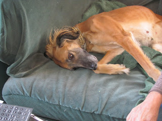 Tazi pix! Right from the source, Almaty & environs– the bearded ethnic Russian guy is Konstantin Plakhov, who bred our Ataika, seen here as a pup at Kostya’s there and as a matron, here, below.