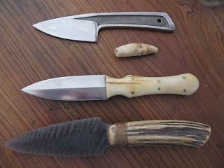 Finally: just happened to have this photo of a few pretty ones handy, including a Skaggs boot dagger and a Callahan knapped skinner. The tooth is unusual.