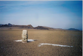 On such roads, from Mongolia to the Ukraine, stand the balbals, enigmatic markers, often holding bottles– for ritual snuff?