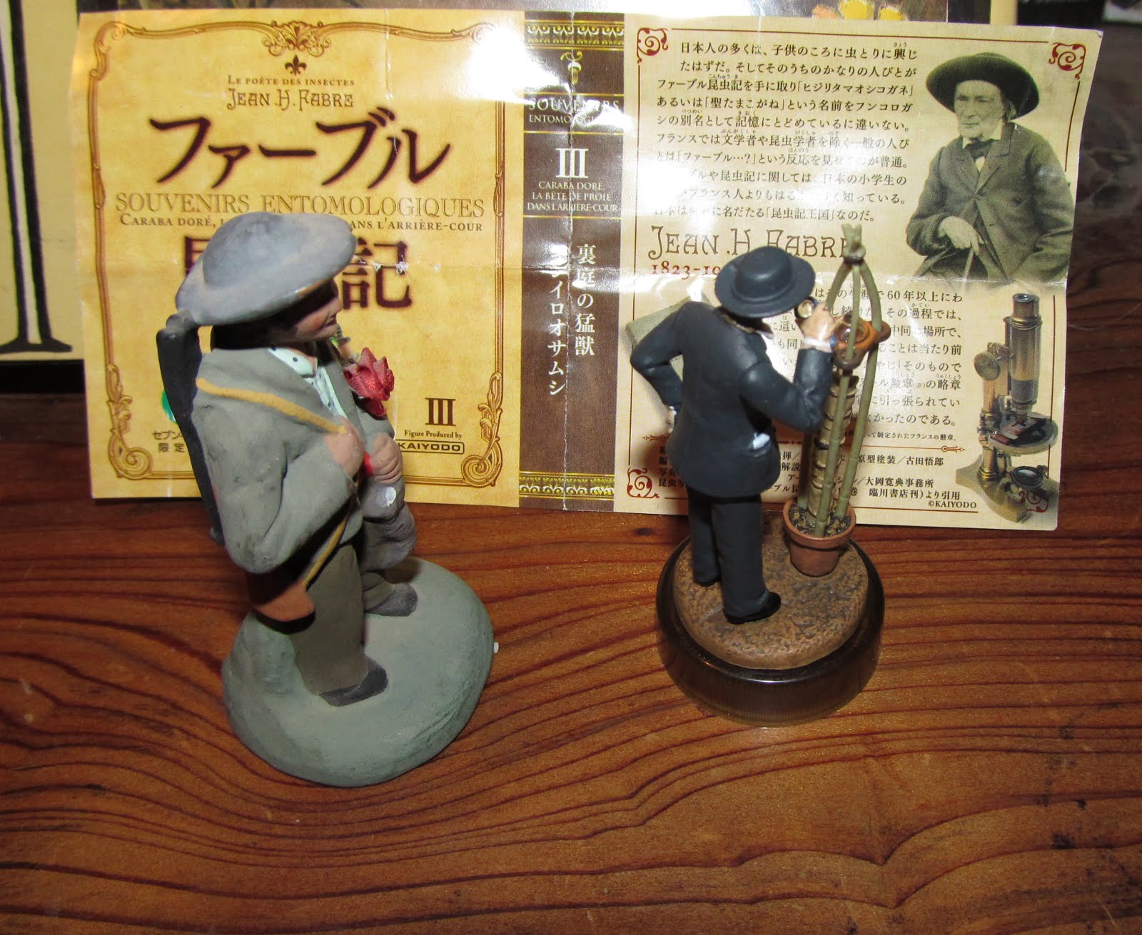 How could I resist? It took some emails to Thailand and “Formosa”, but I ended up with one famous Fabre insect, the “Carabe Doree”, and Fabre himself, so detailed that his magnifying glass has a lens!