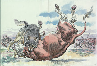 Tunnicliffe’s unjustly neglected 1930’s image for Williamson’s The Peregrine’s Saga. I wonder if some illos by Gorbatov for the new REF Fidget volume are a homage. VG certainly is familiar with his predecessor’s works– see his Lobo illos. Many are witty elaborations on Seton…