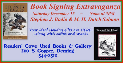 Dutch Salmon and I will be signing at an afternoon- long event in Deming, on Saturday 15 December, at the bookstore of “dog- in- laws” Dan and Margaret. Be there!