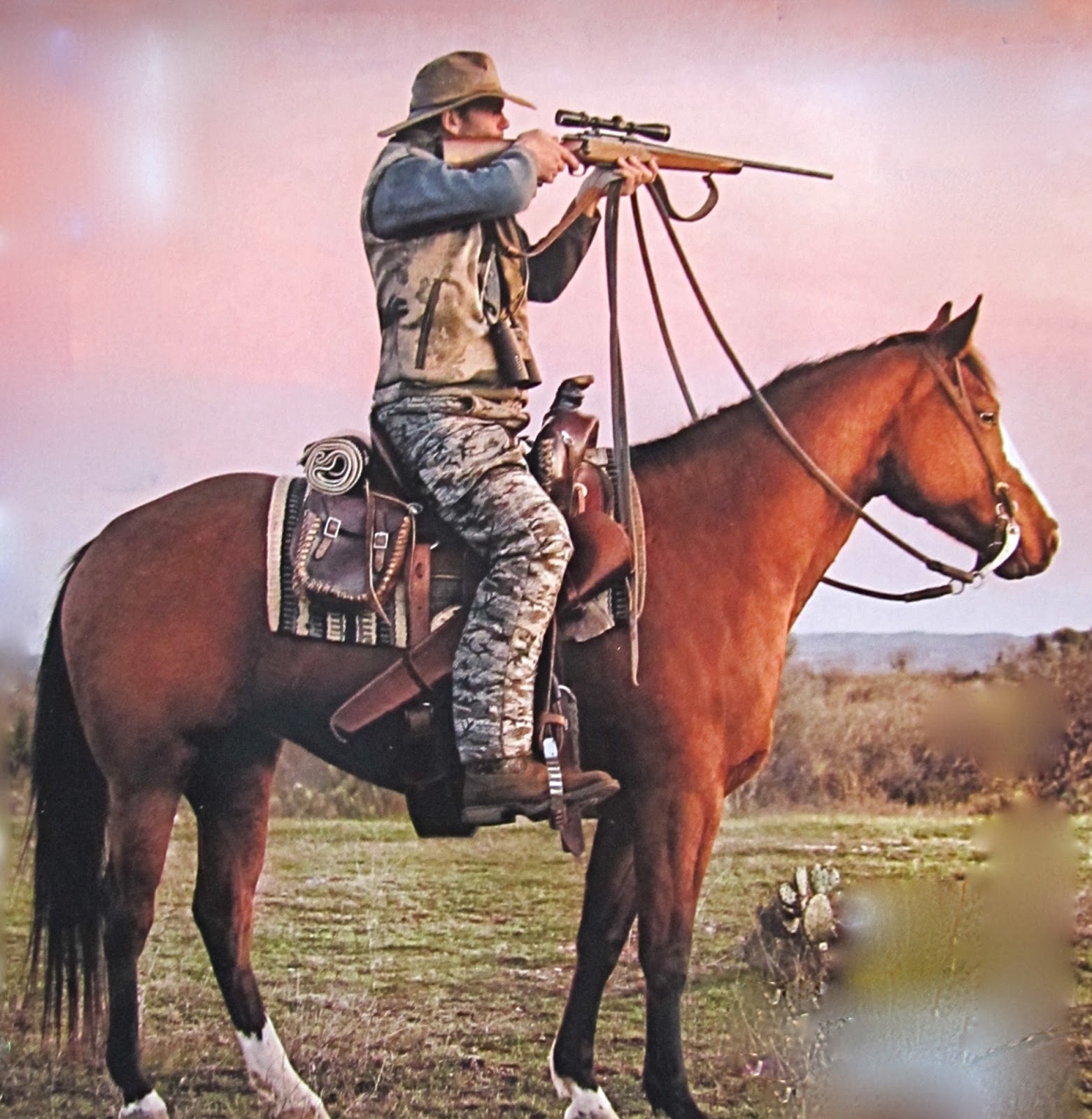If I did shoot off a horse, I would likely find out if the horse was used to it or not, use a .30-30 or other mild old lever rifle, and point it away from the horse’s head. And still not hold the reins like that.