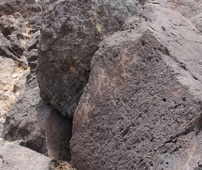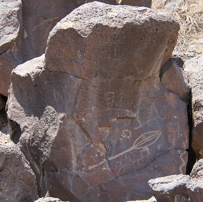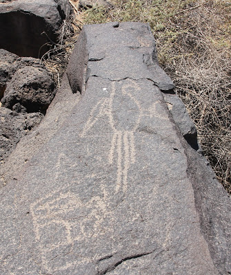 While I was waiting for Connie’s plane to arrive in Albuquerque last week, I had a little time to visit Petroglyph National Monument located across the Rio Grande on the west side of town. Access there is easy, there’s no admission fee, and they only charge $1 for parking.