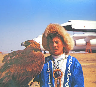 Centuries clash in this photo of a young berkutchi at the Cosmodrome, taken just after the fall of the Soviet Union, possibly by Oleg Belyalov who does not have email, and given to me in Brooklyn in the early 1990’s; recently disinterred from one of my nine ring- binders on matters Central Asian. It was a transparency, and I copied it by taping it to my south window and snapping with my point- and- shoot, so apologies for quality!