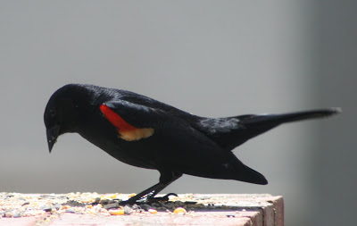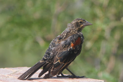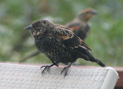 Red-winged blackbirds are the most common visitor we have at our feeders, but paradoxically I rarely post about them. We were visited by a gaggle of red-winged fledgelings a few days ago that inspired me to write this.