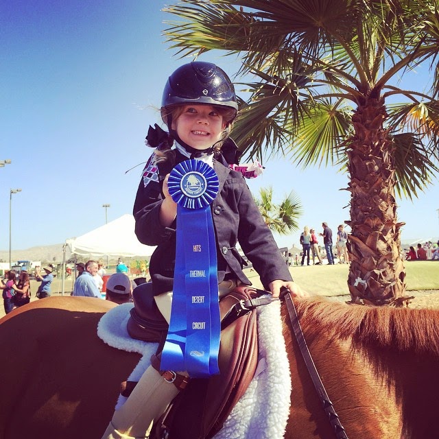 In other important equestrian news, granddaughter Bella got another blue ribbon in a lead-line class at the big horse show in Thermal, California.