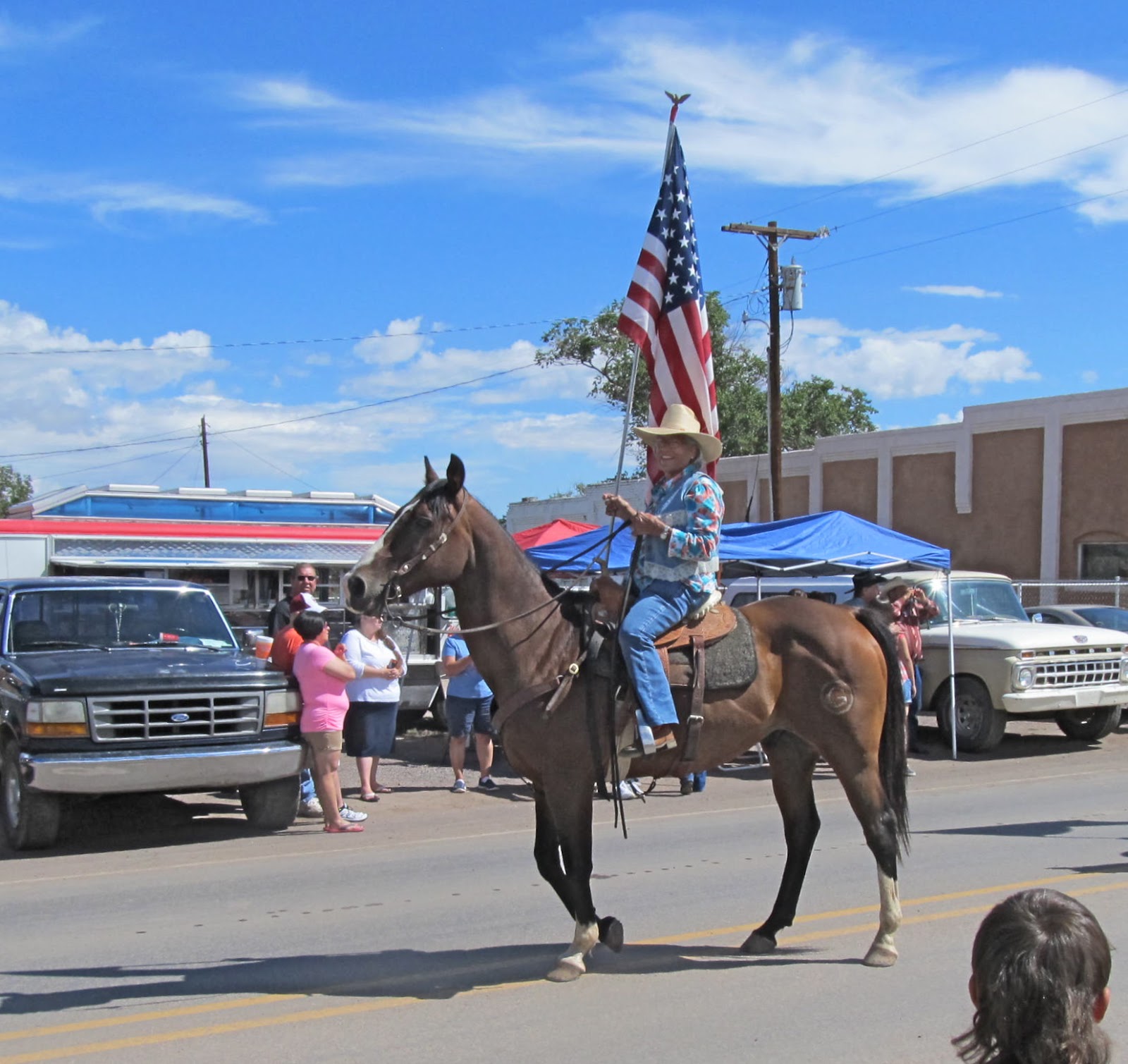 Above: the guy with this float has a collection of antique (mostly 19th century) astronomical telescopes, some on display at a gallery in town, and assists at astronomical events and star parties. (Remember, we have Tech, the VLA of “Contact” fame, and a huge traditional telescope on the crest of the mags. NM is cowboys, Indians, old Spanish culture, and science fiction.