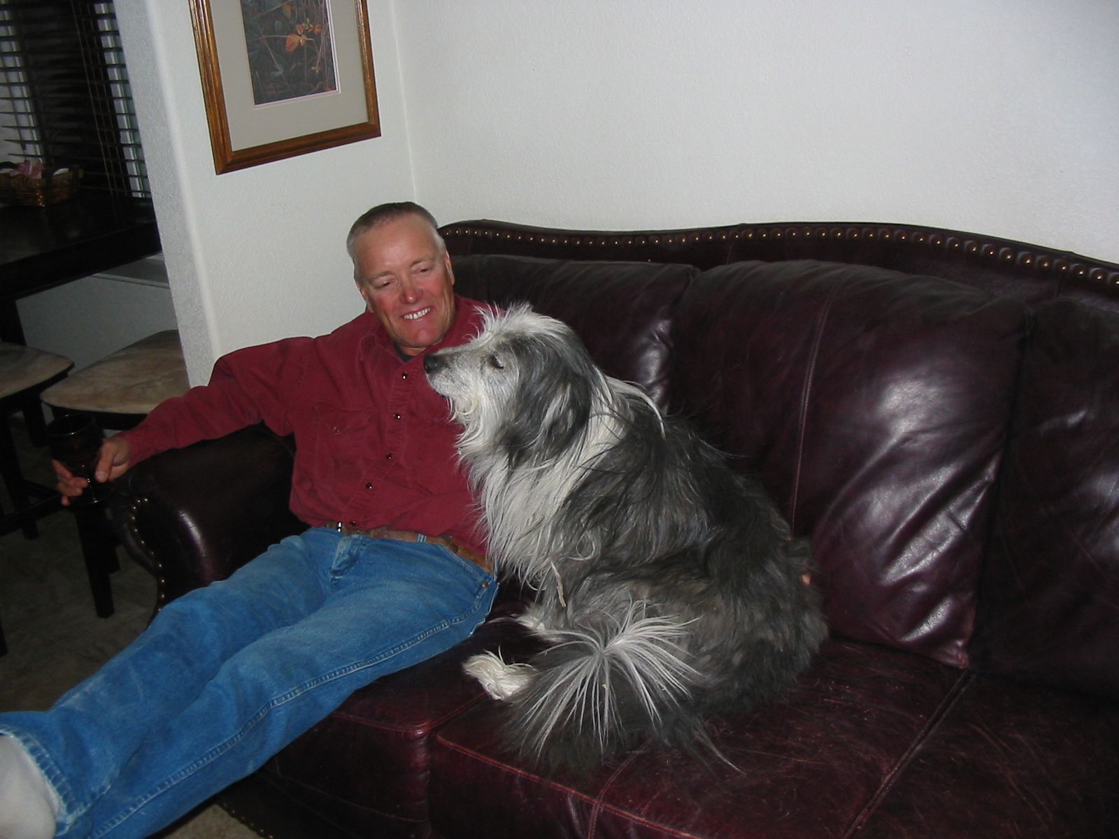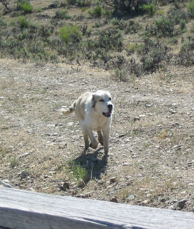 Here are Cat and Jim at their trailer house on a dirt road south of Pinedale, where I took refuge from Jackson Hole, a place that my convalescing friend Peter Bowen (well, a character in one of his best novels, Wolf no Wolf) calls “a good place for a nuclear accident”. For three days, we rode around and looked at the country, the livestock, and the wildife; at night we drank and talked and laughed. Jim and Cat’s well – honed political comedy act had me in stitches. He likes to portray himself as a poor dumb rodeo cowboy who works in the gravel pit; no matter that he and Cat have received grants from the Wyoming livestock council (I THINK– Cat can set me straight) to go to places like Turkey to study livestock protection dogs and their culture, and that Jim and I can stay up all night killing a bottle of vodka and discussing the science and anthropology of domestication, pulling out more abstruse papers than anyone not a student of the subject would ever think existed.