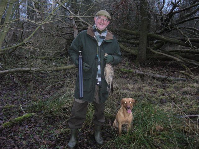 Here is the Magdalaenian from East Anglia, with his bespoke Darne magnum twelve that Herve Bruchet made for him, and his own “Perro del amo”, his lab Petra…