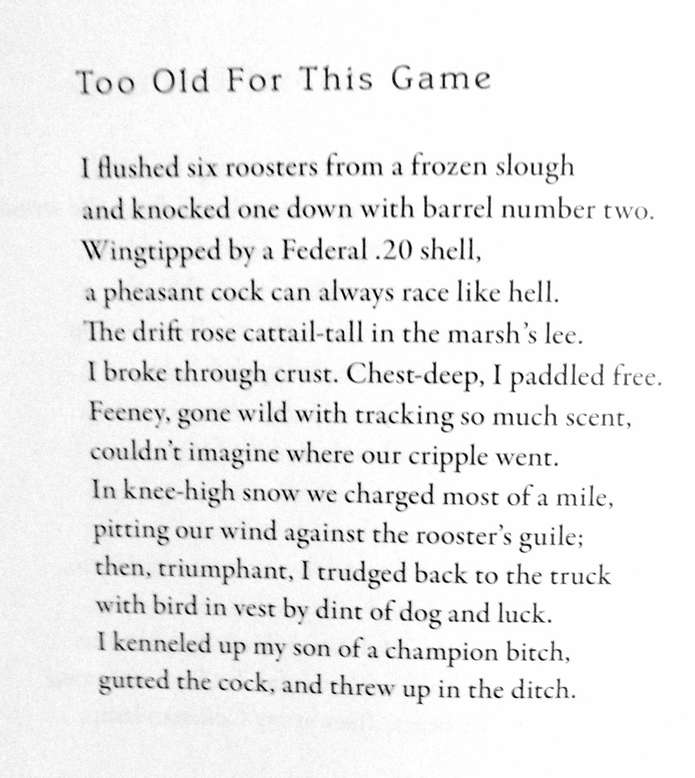 Tim has honored me by giving me some of his yet unpublished longer poems, and one for Easter Week. But I thought I would start with these four, from his Hunter’s Log, one of my “Book of Books” 100. Resist if you can…