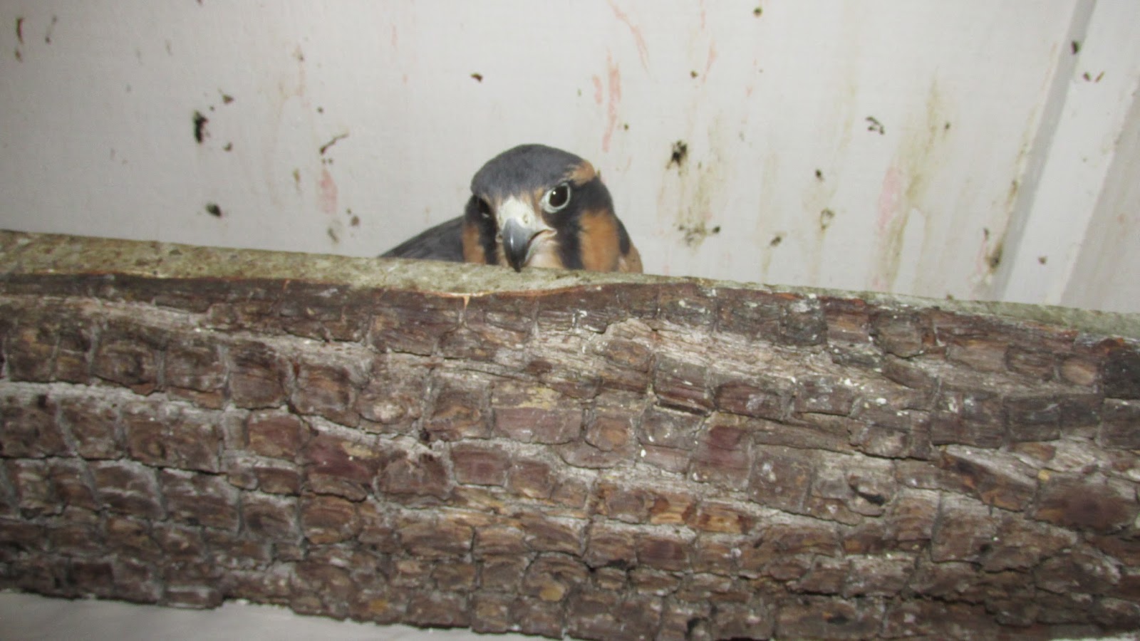We have heard that baby Aplos are the only falcons with dark down. Her (more or less constant, but not unpleasant) vocalization is also different. Makes you wonder about their evo- history