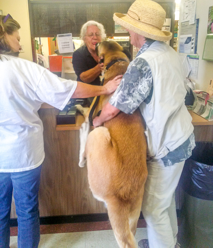 Gunny, Tina Garfield’s Anatolian, is the biggest dog we know, bigger even than other flock protection dogs. Libby used to weigh him on the postal scales when he was a baby. He thinks he still fits on it.