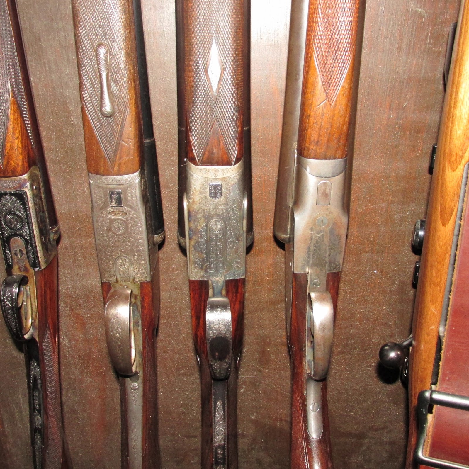 I have put more photos of the French gun, as it is most unusual!  Thanks to Kirby Hoyt of Vintage doubles for that, and to my friend Gerry Cox for the Scott. That is the Turner .410, my other near “Best” shotgun, peeping out on the left.