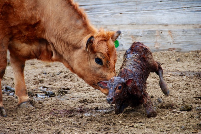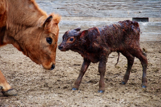 Thank you so much for these photographs of a typical cow doing one of the things she does best, taking care of the next generation. I'm going to try to figure out how to link this to my own page–or maybe one of you could do it since I'm technologically deficient– because I would love to point out the care and concern with which she acts. Sure, wild mothers do this too, but we eat a lot more of the domestic ones, and there is so much complete IGNORANCE about cattle that I like to educate people as much as I can.