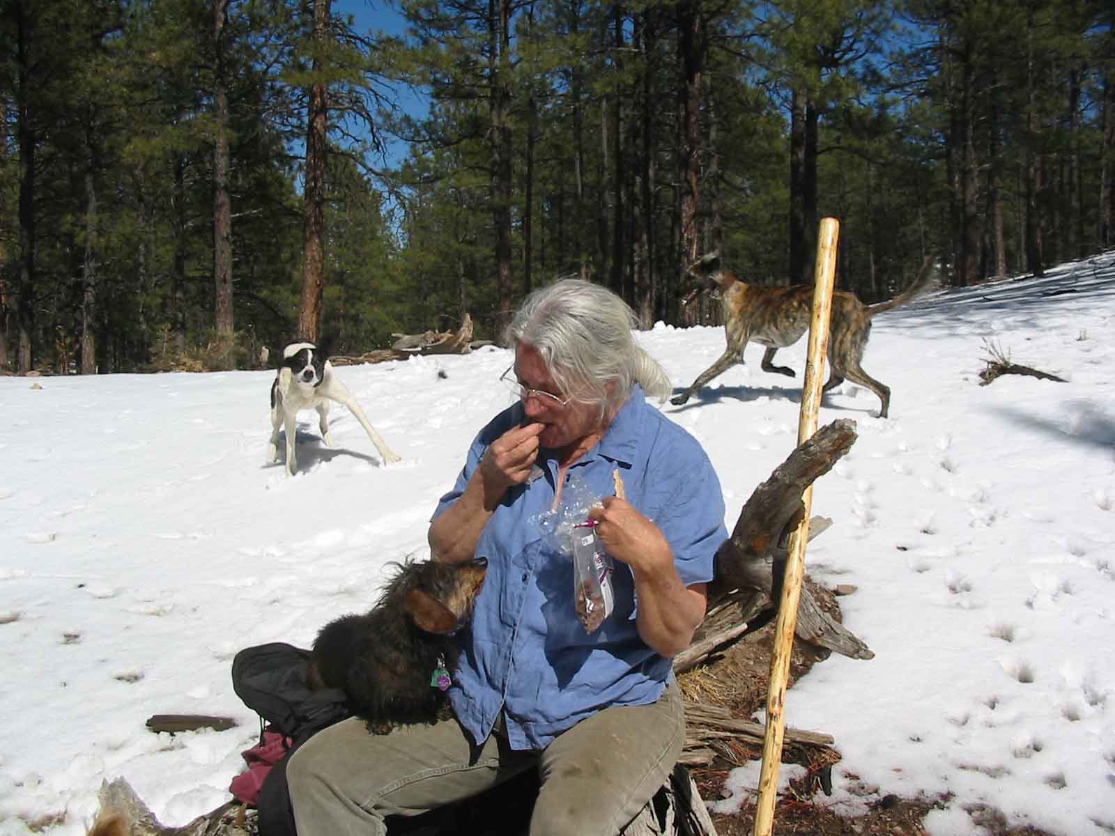 The piece on the girlss playing somehow reminded me of an older incarnation.This would be the late Lashyn and a much younger Ataika, in the spring woods with us the day we discovered the remains of a very large old bear who evidently starved before he could den up . I still have his huge skull with its worn- down teeth, And I still carry a 1911 and 7 X 42 Ziess Dialyts., though I don’t know which is more reactionary. This would be 2005 I think…