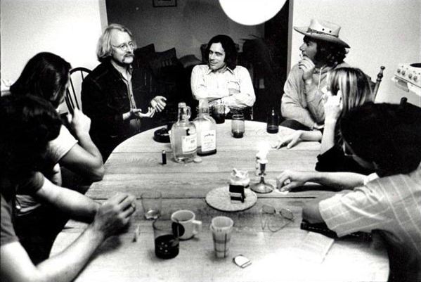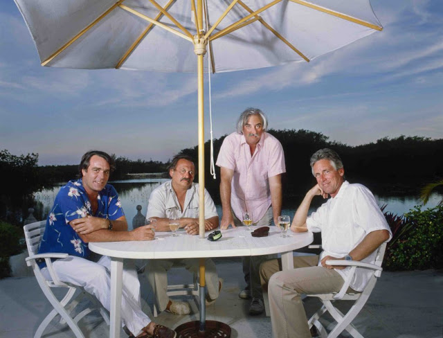 Russell Chatham had long dark hair and and was not fat and had not blown through three (four?) fortunes and a restaurant.In the first photo here, with Harrison, McGuane, and Guy de la Valdene (still another good writer who was one of Pat’s boys), he looks much as he did when he introduced me to Libby twenty- some years ago.