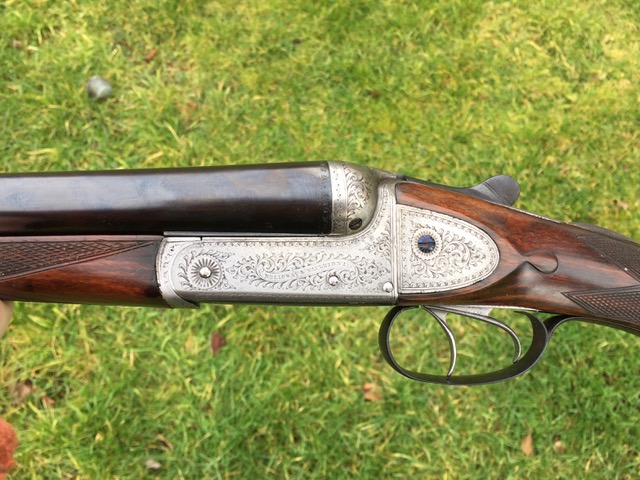 And Daniel’s new second gun, fitted and modified for him by Diggory Haddoke, 16 bore Holloway and Naughton, the only sideplate gun I ever liked. (“First” is a Purdey back action hammergun like Lord Ripon’s or King Edward’s (“God the Father shoots a hammer Purdey”)of course.-