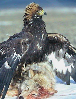 Two more thoughts, and images.The late Colonel Jeff Cooper, justly famed for pistol craft, once wrote me the following. note when I told him that the Kazakhs hunt wolves with eagles: “PUPPIES, perhaps; hundred pounders, unlikely!” Trouble is, he wrote that after seeing THIS: