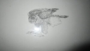 I didn’t get to meet Eldridge until last year, when he was illustrating books for my friend. the poet Tim Murphy, who also wrote eloquent poetry about bird hunting. Tim had written a poem about me and my hawks and he wondered if this would be adequate as it was his first picture of a Goshawk. I was stunned at how good it was. Though there were no Goshawks in the book, I immediately decided that I had to buy it. Although the price was $650, he gave it to me! This generosity of heart to a mere acquaintance is not a common thing.