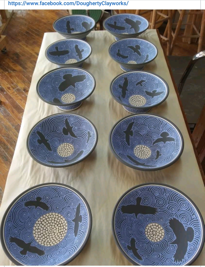 I got an unexpected email today. It was a reply to one 2 years old. It had this image I sent around to Steve and others. I thought those bowls were still stunning and what an xmas gift they would be. They all look hand made and their cost may be scary but still nice. I am not sure of the symbolism if there is any. Southwest or native or crows in a Van Gogh sky with a moon?