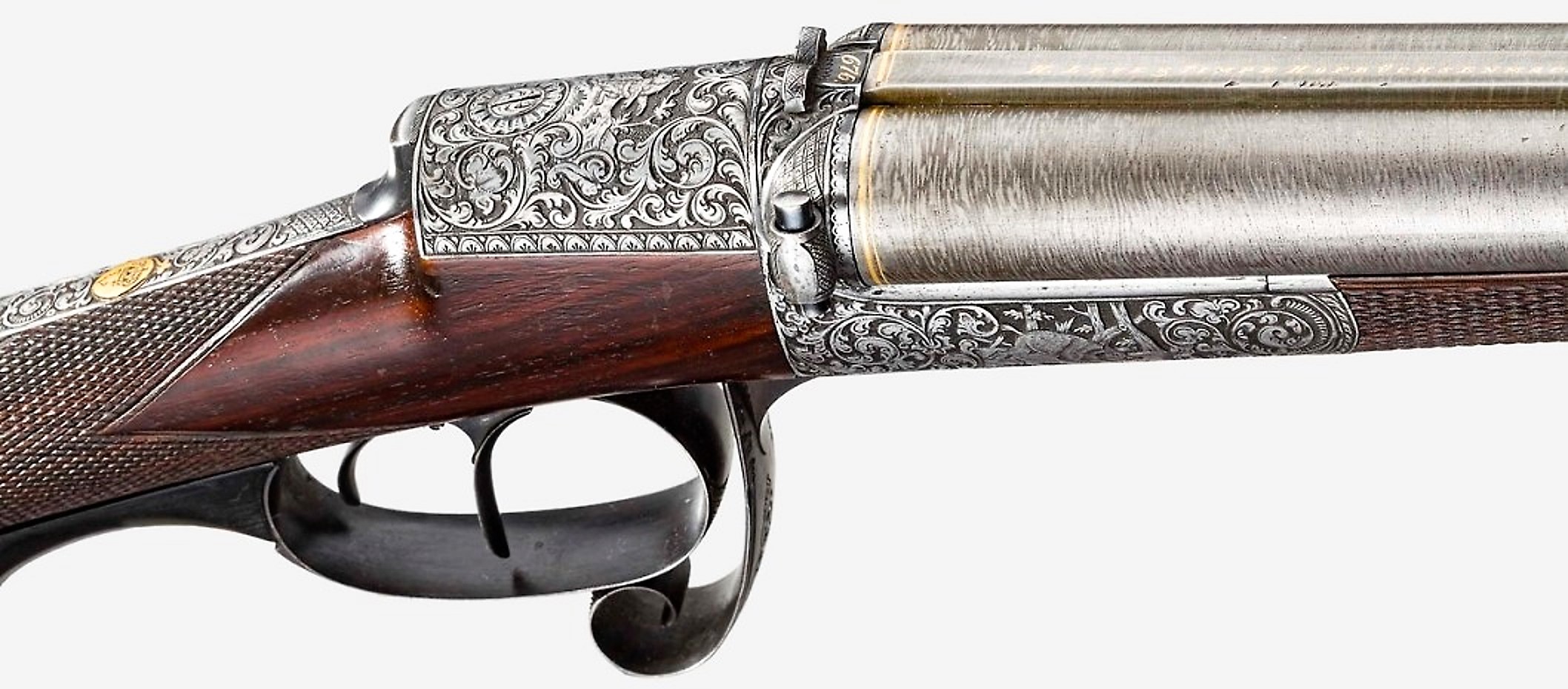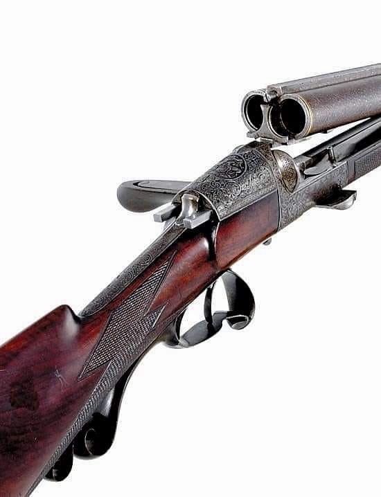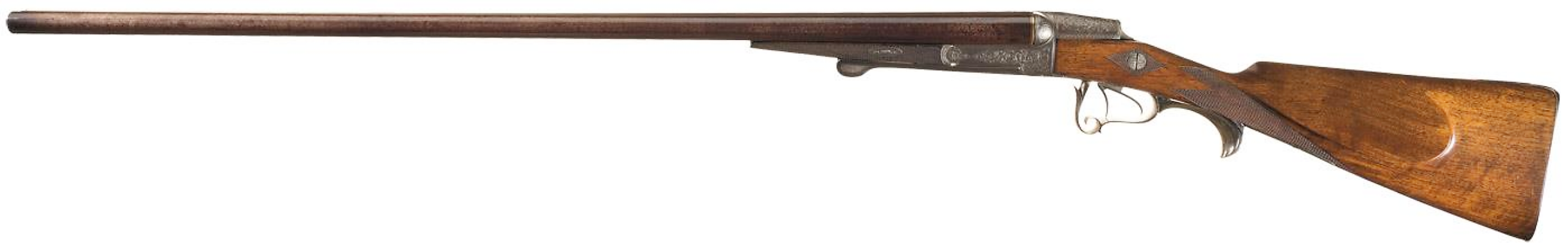 E. Blancke 12 gauge SxS hammer free. The German shotgun represents an interesting transition from external firing to traditional hunting to internal firing of the modern boxlock.