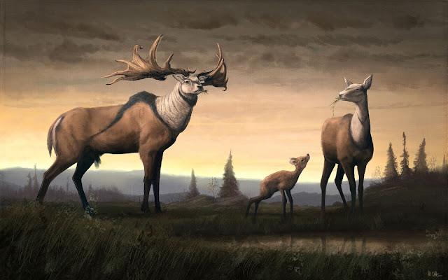 Seeing this recent detail and a possible picture of it tweaked my interest in it again. This puppy could weigh up to 600 lbs. What a bruiser for a whitetail\muley analog. So very little is known about it that I wonder what its antlers were like. Antler size is related to skeleton size so what shape and maximum size did they reach? Who knows they could have  been spectacular. Living in the Pleistocene, it also likely would have had higher nutrition to produce a huge rack. Did it look like a whitetail or a muley? We may never know but I will bet it was a sight. Maximum antler size is probably never represented in the fossil record. The stats are against it. The average mature whitetail carries a 130 inch class 8 pt rack. That means half of them are less than that. On the top end another 100 inches is possible which is a great deal. Large northern whitetails can weigh 300 lbs, or half of lucasi.