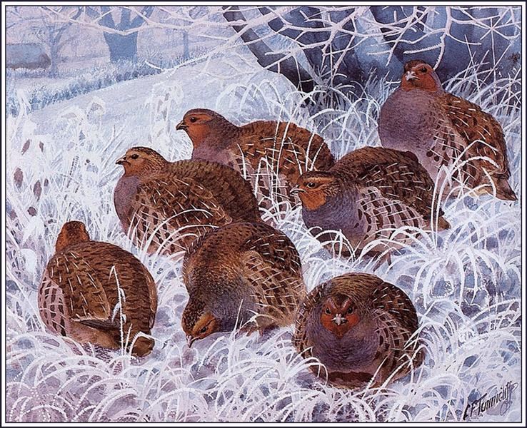 Grey Partidges, by Charles Tunnicliffe, a British, illustrator and wildlife painter ( U.K 1901-1979 )