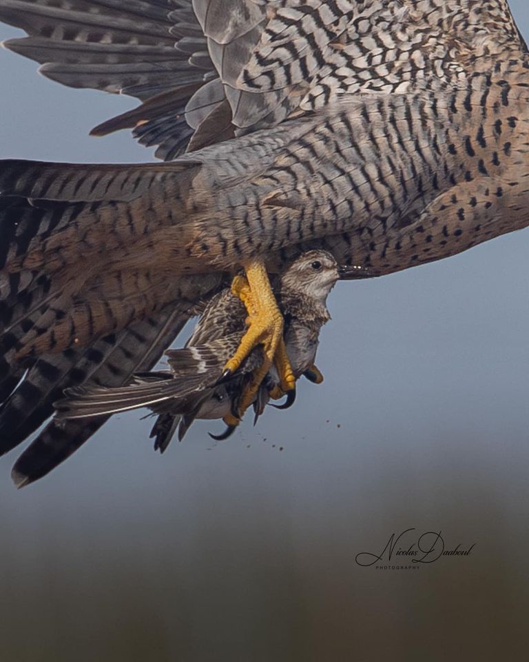Semipalmated Sandpiper – Grand Pre, NS Sept 2023On. And there might be an adult Peregrine Falcon there also.Hitching a ride. The journey will be fast. However, the destination is inevitable. We often see images from the bird of preys perspective. So here’s what it might look like from the prey itself. It looks eerily comfortable. Nicolas Daaboul