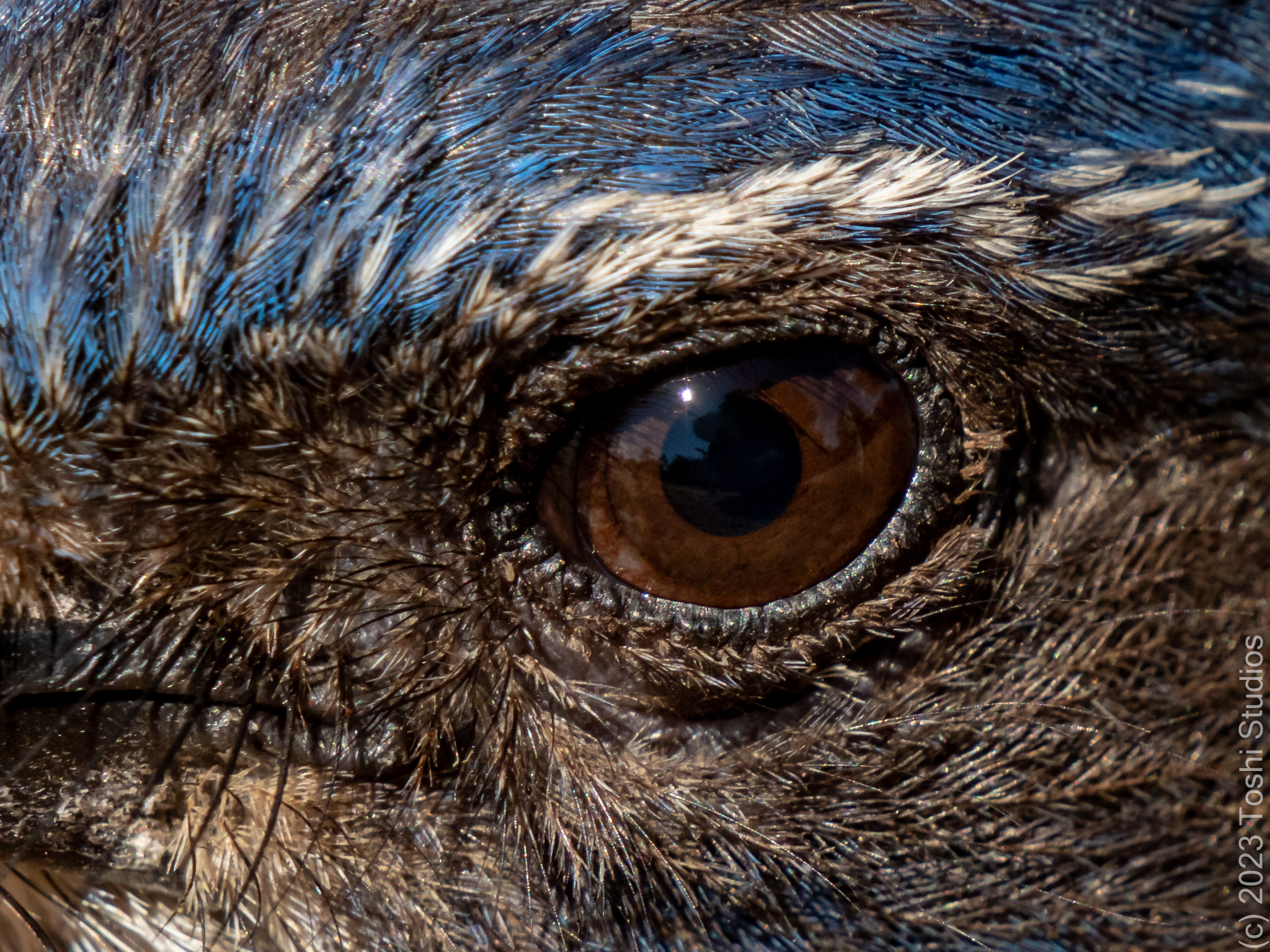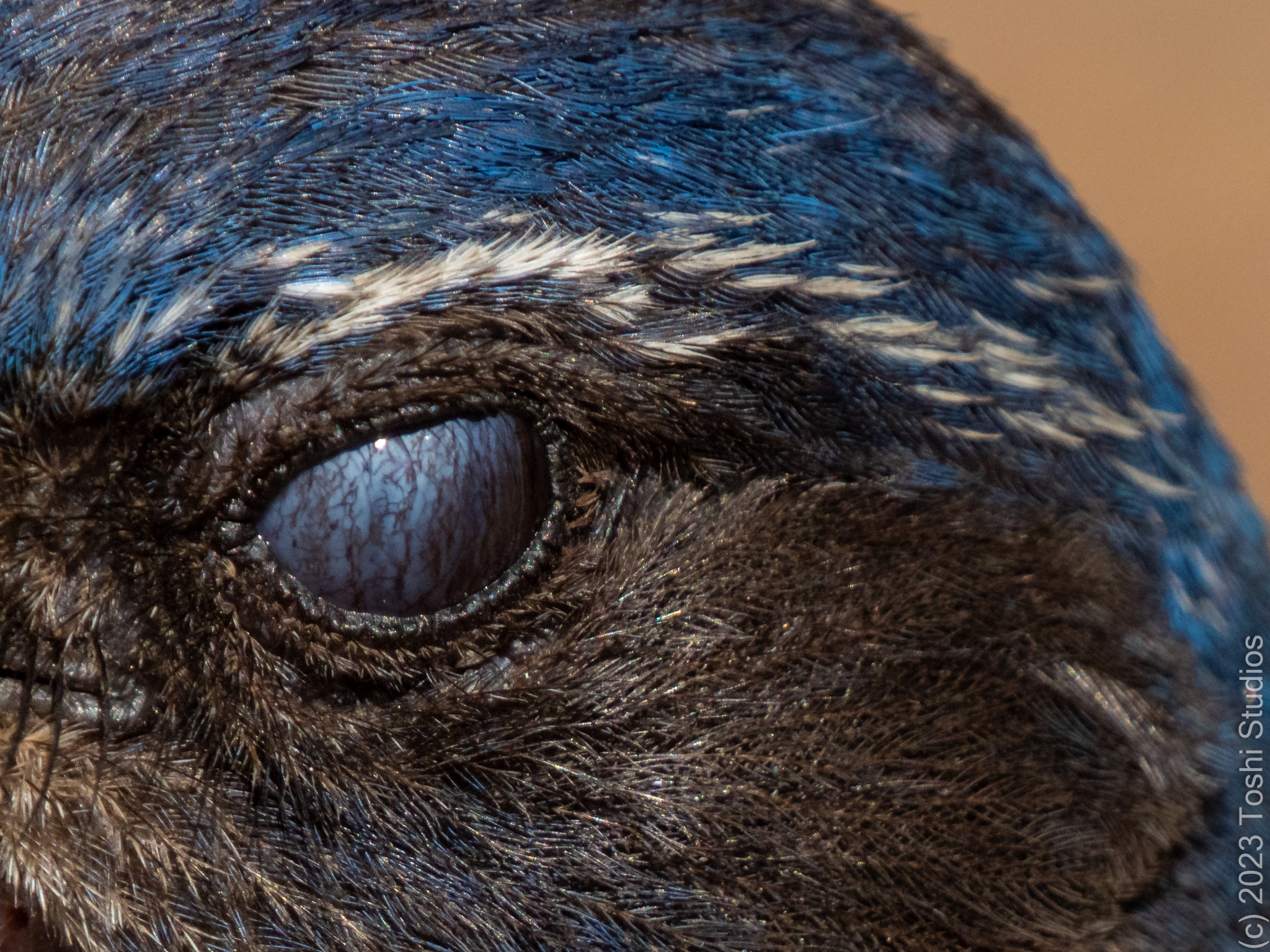 Einstein (a scrub-jay) will perch in a bush if I point at him, then point at the bush. You would expect him to fly over to the bush, but no. He walks over to the bush, then climbs up all the branches to the top. I don’t know why he does this the hard way. Anyway I can get some nice shots of Einstein because he will perch for me when I ask. Here’s some shots of his eye. Sometimes I catch him when he blinks, and the pattern on his nictating membrane look like lightning. Toshiyasu Morita