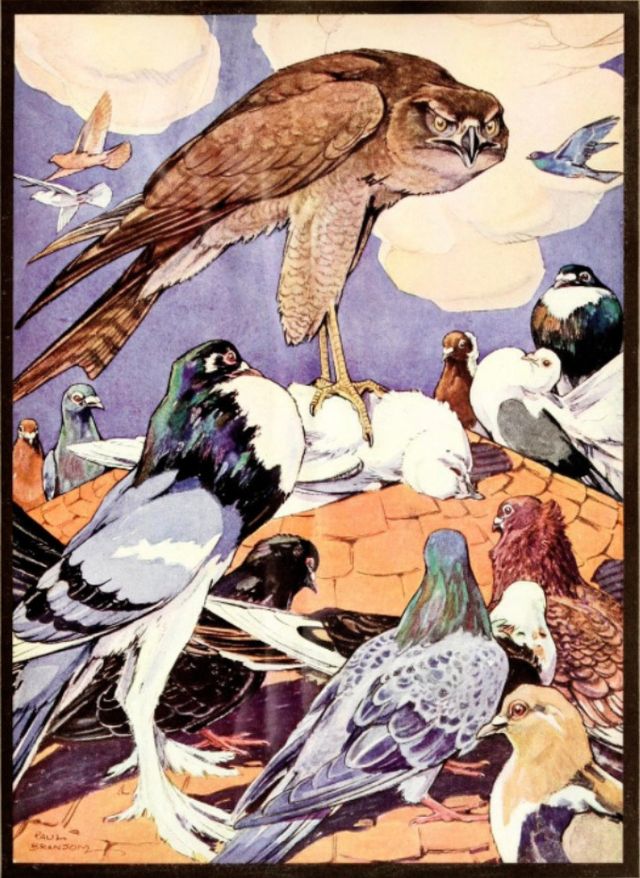 I’m trying to get back in but it’s an uphill battle because of my disabilities. There are lots of things I need to comment on. That sparrow hawk is not unnatural, it’s just a little too big compared to the pouters. They really have exaggerated proportions compared to the goshawk — huge staring eyes and skinny legs…I love that artist. Please send more of his work and sources.