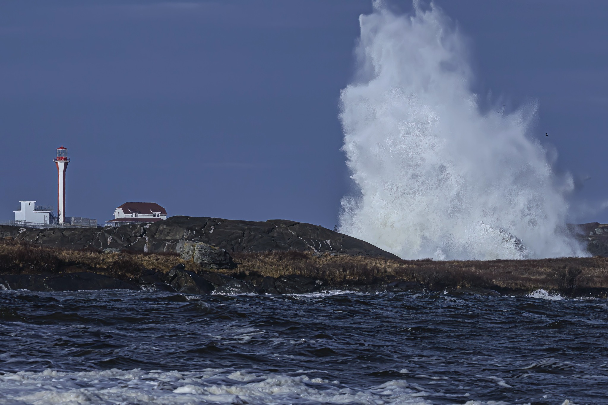 I was thrilled to view this very dramatic and powerful sight of a big wave colliding with great force against the rocks sending a towering spray high in the air. Looking from the Hilton Road towards Cape Forchu Light Jan.11/2024 Ervin Olsen