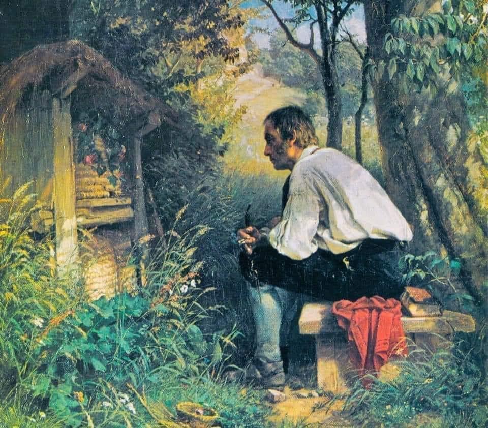 The typical way to tell the bees was for the head of the household, or “goodwife of the house” to go out to the hives, knock gently to get the attention of the bees, and then softly murmur in a doleful tune the solemn news.