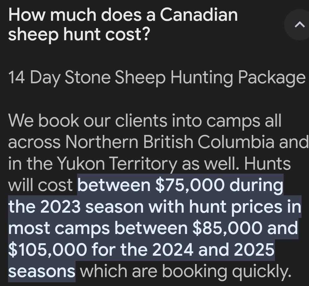 A friend sent this a week ago. He hunted BC, a few years ago, before covid and price escaltion. So what does a Central Asian sheep hunt cost now? A million?