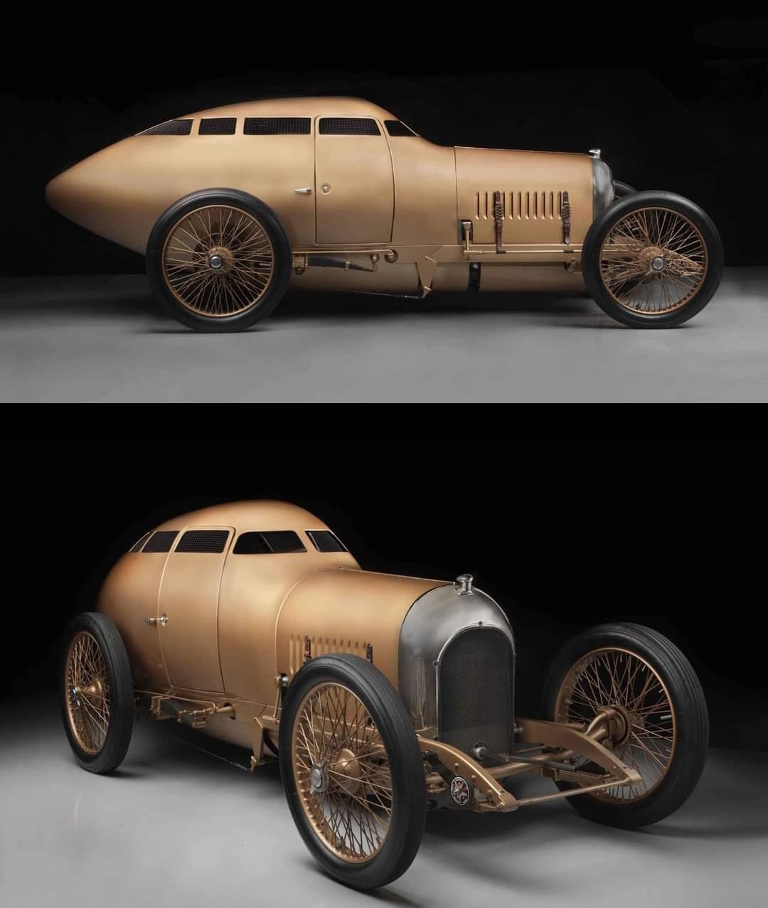 “Mercilessly mocked…until it started winning. The 1917 Golden Submarine was Harry Miller’s first enclosed race car and was made with a “safety” cage after the death of driver Bob Burman. It won 17 of the 35 races it ran and set every international dirt-track speed record.” Photos by Peter Harholdt Classic Rides