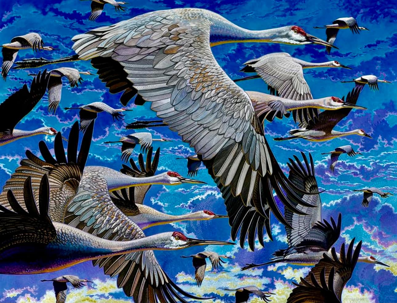 CRANE SQUADRON: Winsor Newton gouache on Crescent cold press board. 30” X 40” Paul Turnbaugh