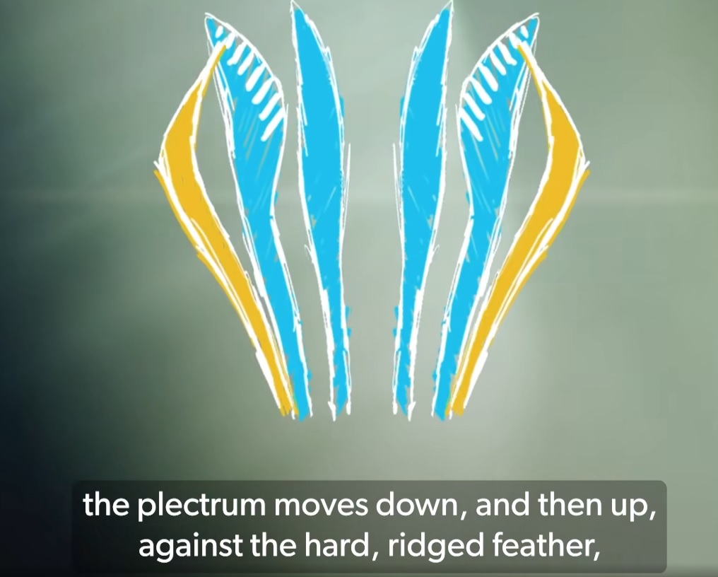 ​ Modified wing feathers are rubbed over bumps at high speed to produce the sound. The only bird that does so which resembles how insects create mating sounds.