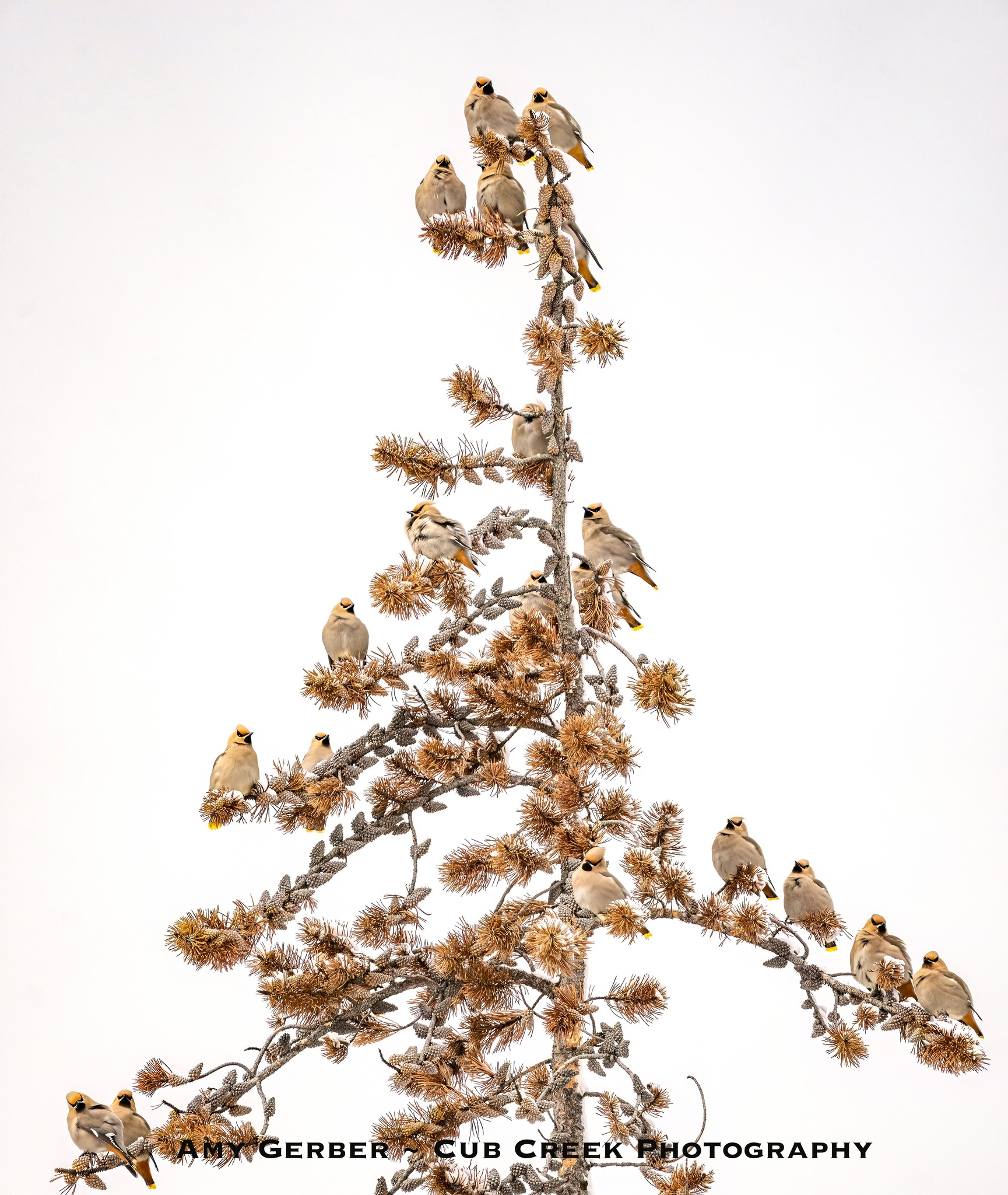 It would be this. A tree past its prime. Holding on for a few last breaths. Full of little cones that are full of little seeds that will scatter across the landscape when the time comes. But for now, it will provide a resting post for tired birds that flew 100’s even 1000’s of miles, from the far north. These Boho Waxwings don’t seem to care that the tree has lost its green, youthful glow. As a matter of fact, the rusty needles matched perfectly with rusty crowns of each bird. And I found that to be breathtakingly beautiful. So, if Mother Nature could design the perfect Christmas Tree, I think it would look like this. Cub Creek Photography