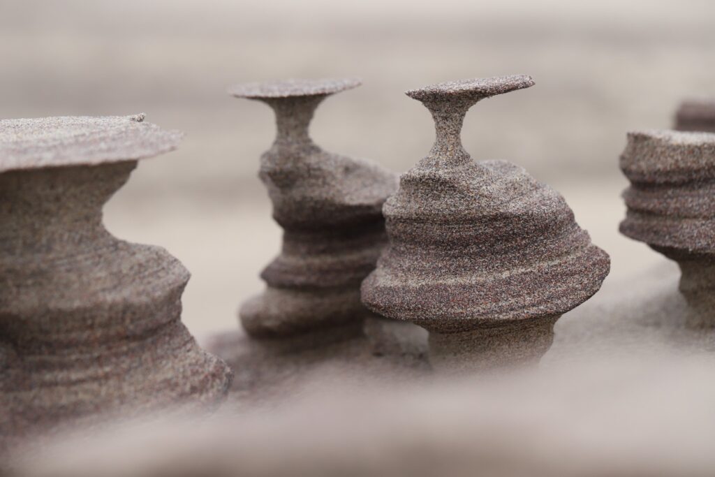 The beautiful sand sculptures don’t last long.In a few hours or days, they’re eroded by airborne sand, or they collapse.