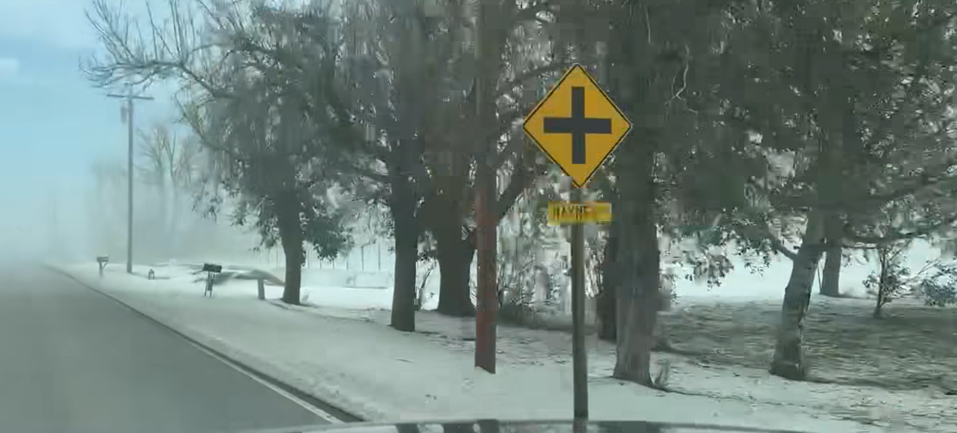 Not snow…HAIL! This is Tuesday morning…12 hours after the storm in Shepherd, MT dropped enough hail to measure 6 to 8 inches in depth in some places with up to 1.5″ hail measured. The 70+ mph wind-driven hail made a shambles of nearly everything in it’s path. The trees (that are still standing) are stripped of their leaves, and the fog makes it even more ominous. Thanks, Jim Werth