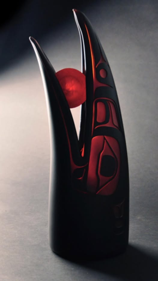 Raven Steals the Sun a glass collaboration sculpture by Tlingit artist Preston Singletary and David Franklin.Queen Charlotte Haida Gwaii Seniors